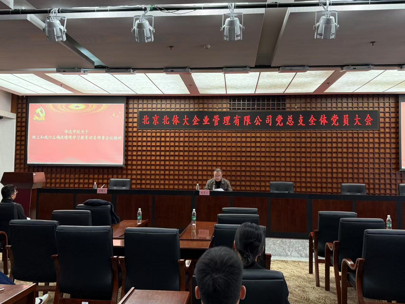 为凝聚奋进力量,切实推进公司党建工作与年度重点任务深度结合,2026年3月12日下午2点30分,北京北体大企业管理有限公司党总支全体党员大会在体育培训中心二层会议室顺利召开。会议围绕传达北京体育大学树立和践行正确政绩观学习教育讲话精神、推动巡察和审计整改、加强党员教育管理、公示党费收支情况等关键议题展开,明确工作方向、细化任务要求。企管公司党总支全体党员参加会议,会议由学校党委派驻企管公司工作组副组长、党委巡察办公室主任王旭辉主持。